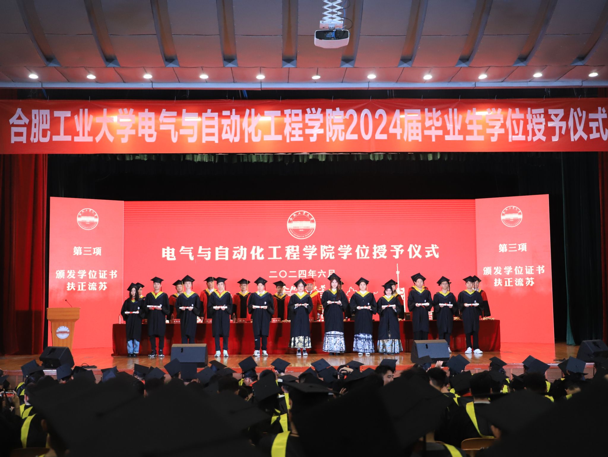 6月18日下午,vwin德赢ac米兰官方网2024届合肥校区毕业生学位授予仪式在屯溪路校区斛兵礼堂举行。校党委常委、副校长刘晓平出席仪式,学院相关负责人、学位评定委员会委员、教师代表、学生家长代表、校友代表以及2024届学士、硕士、博士学位获得者参加仪式。仪式由学院副院长黄海宏主持。