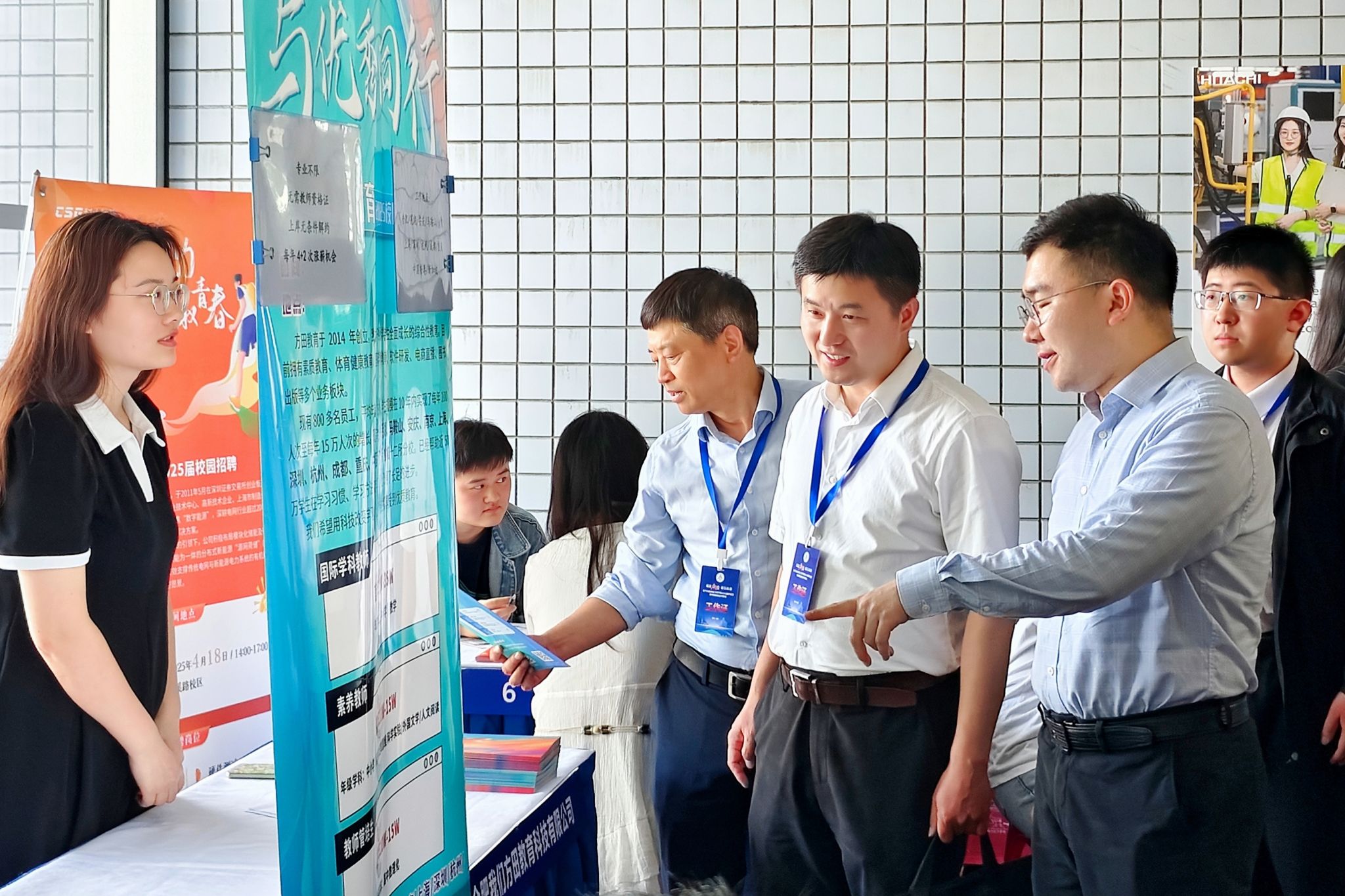 现场气氛浓厚,交流激烈,秩序井然。学生积极投递简历,主动同企业代表沟通。用人单位负责人热情解惑,详细讲述企业职能、岗位设置、薪酬发展等内容。各年级辅导员老师全程陪同,提供求职指导,鼓励学生自信参与。学院就业朋辈领航团队现场驻守,做好简历完善、物资保障等服务。
